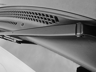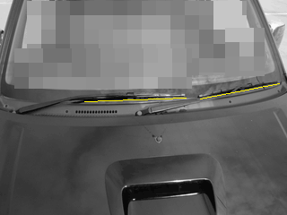 まずワイパーアームを外すのですが、フロントガラスにおけるワイパーブレードの現在位置があとで分かるように、マスキングテープなどを貼っておきます。右画像の黄色線のように印を付けておきましょう。この作業をしておかないと、塗装したワイパーアームを後で取り付けた時にワイパー可動範囲がずれて動作がおかしくなる可能性があります。