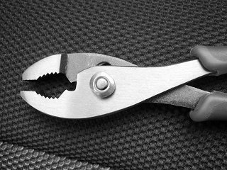 作業は右画像の赤丸部分に傷防止のためのクッションになるものを巻いてプライヤーなどで咥えて反時計回りにまわすだけです。クッションはタオルなどでよいでしょう。